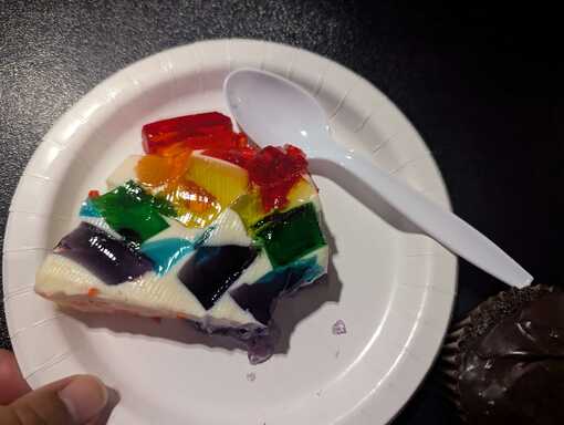 I was also out of town this week, so these two cakes were made by two other friends. I had not heard of Malört before this, but it apparently tastes very very bad. They brought a second (non-Bundt) cake in case people wanted to actually enjoy their dessert.