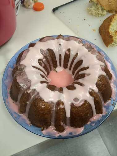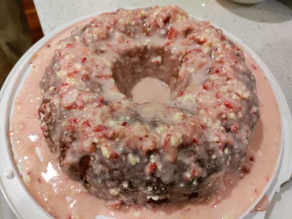 The last image is a birthday cake for my Bundt cakes! A friend made it without telling me, which I thought was very sweet, but it was also extremely confusing to walk into the room and see a Bundt cake that wasn't mine. It was a lemon cake disguised as a strawberry cake.